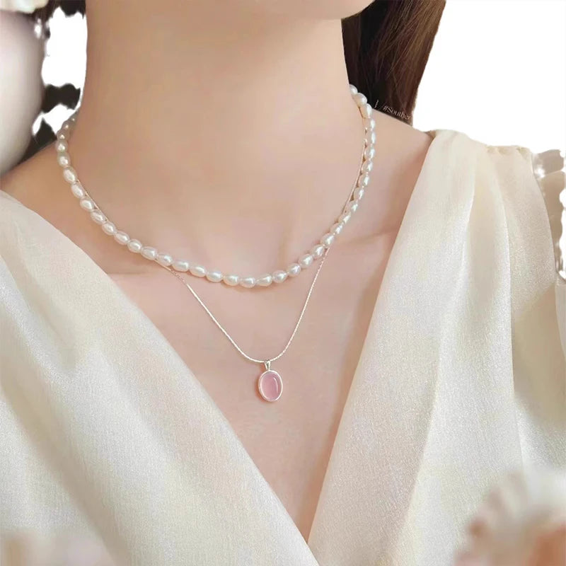 925 Sterling Silver Pink Crystal Moonstone Necklace Grace and inner strength