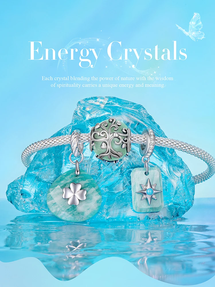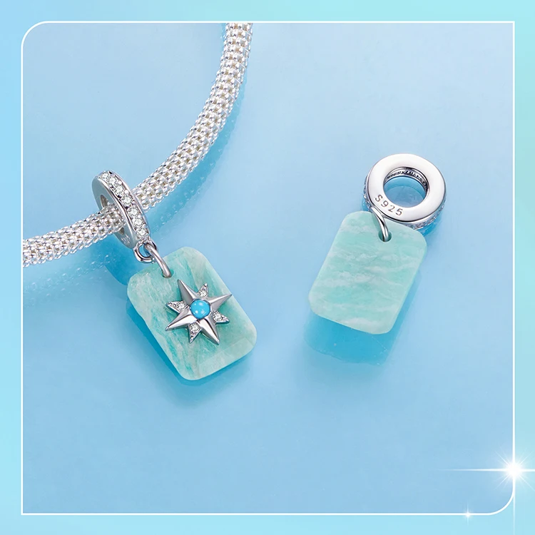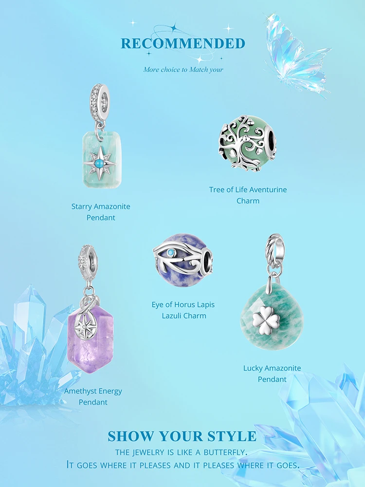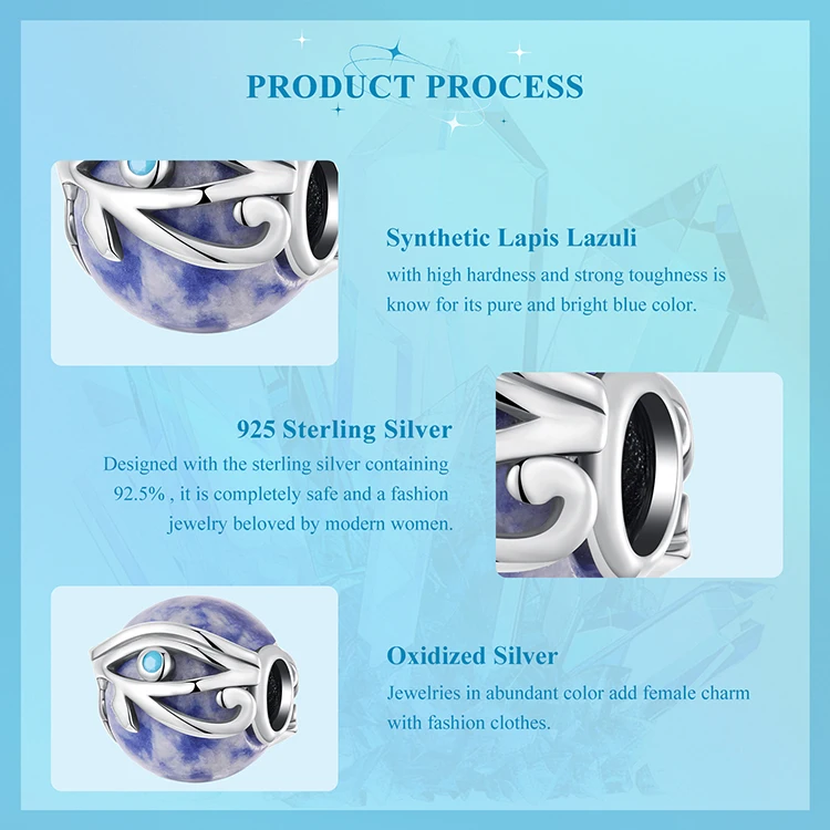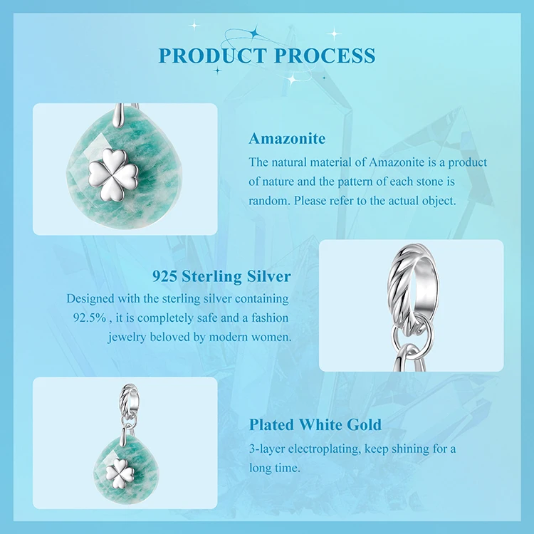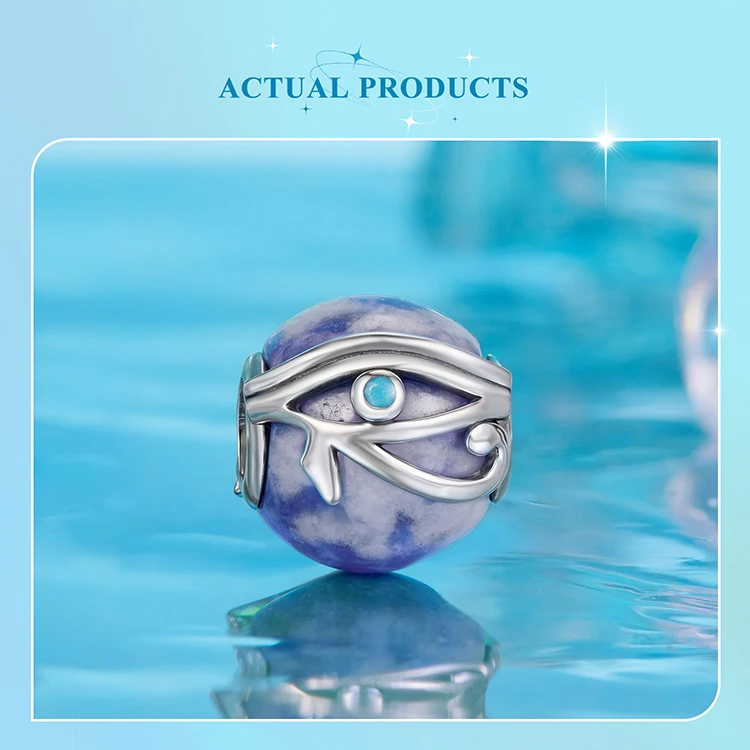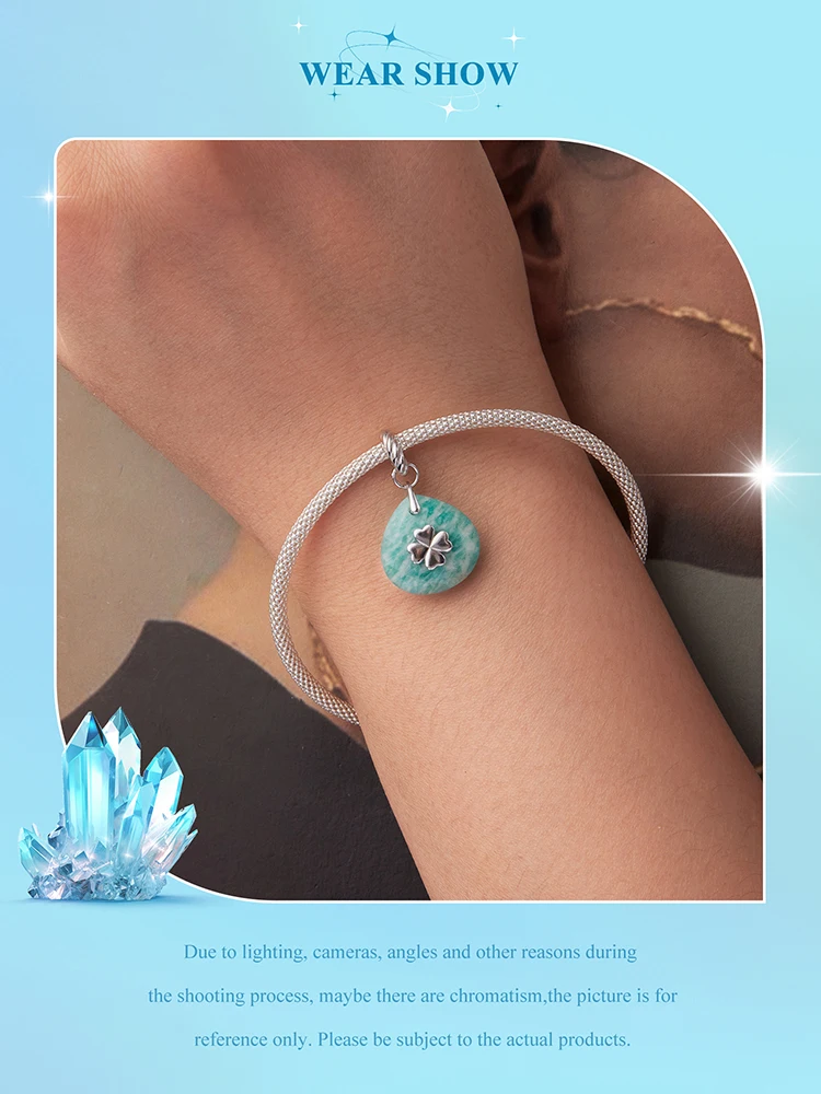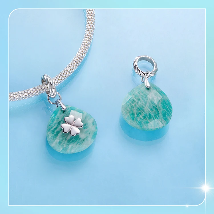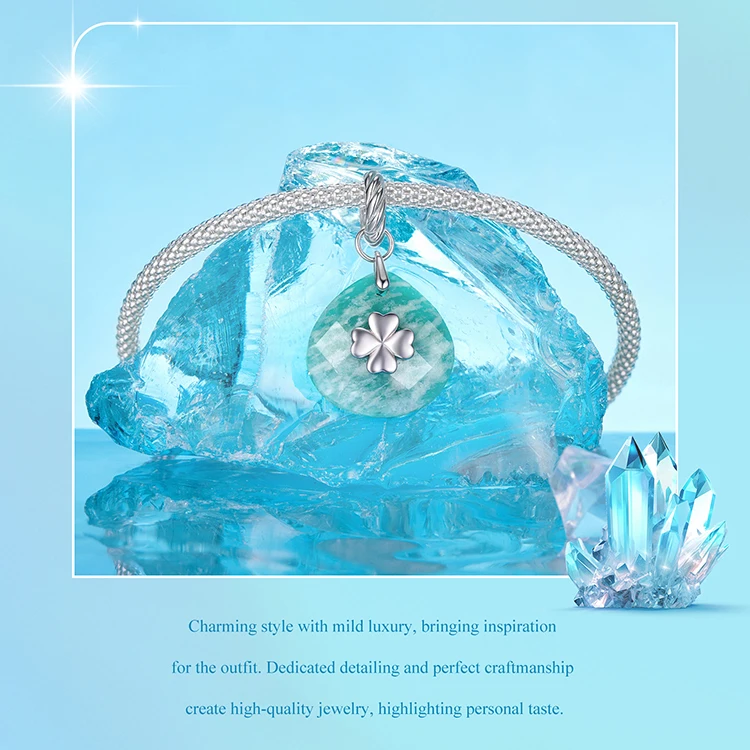 Bamoer 925 Sterling Silver Four Leaf Clover Dangle Charm Bead for Bracelet Eye of Horus Lucky Crystal Stone Pendant DIY Gift