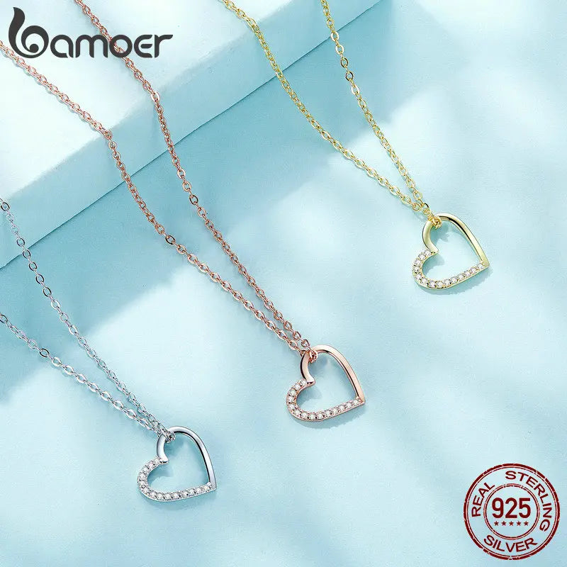 BAMOER Genuine 925 Sterling Silver The shape of love Chain Necklace for Women, Godl Plated Heart Necklace 3 Color 18.11''